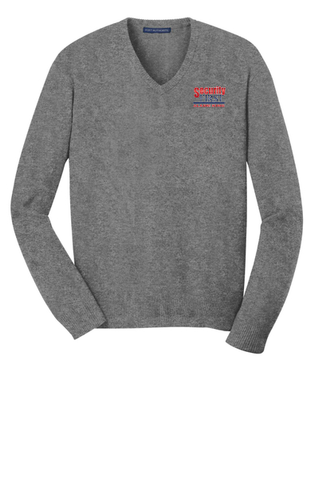A beautiful and versatile addition to any work wardrobe our fine-gauge v-neck sweater has fully-fashioned sleeves for strength comfort and longer wear.